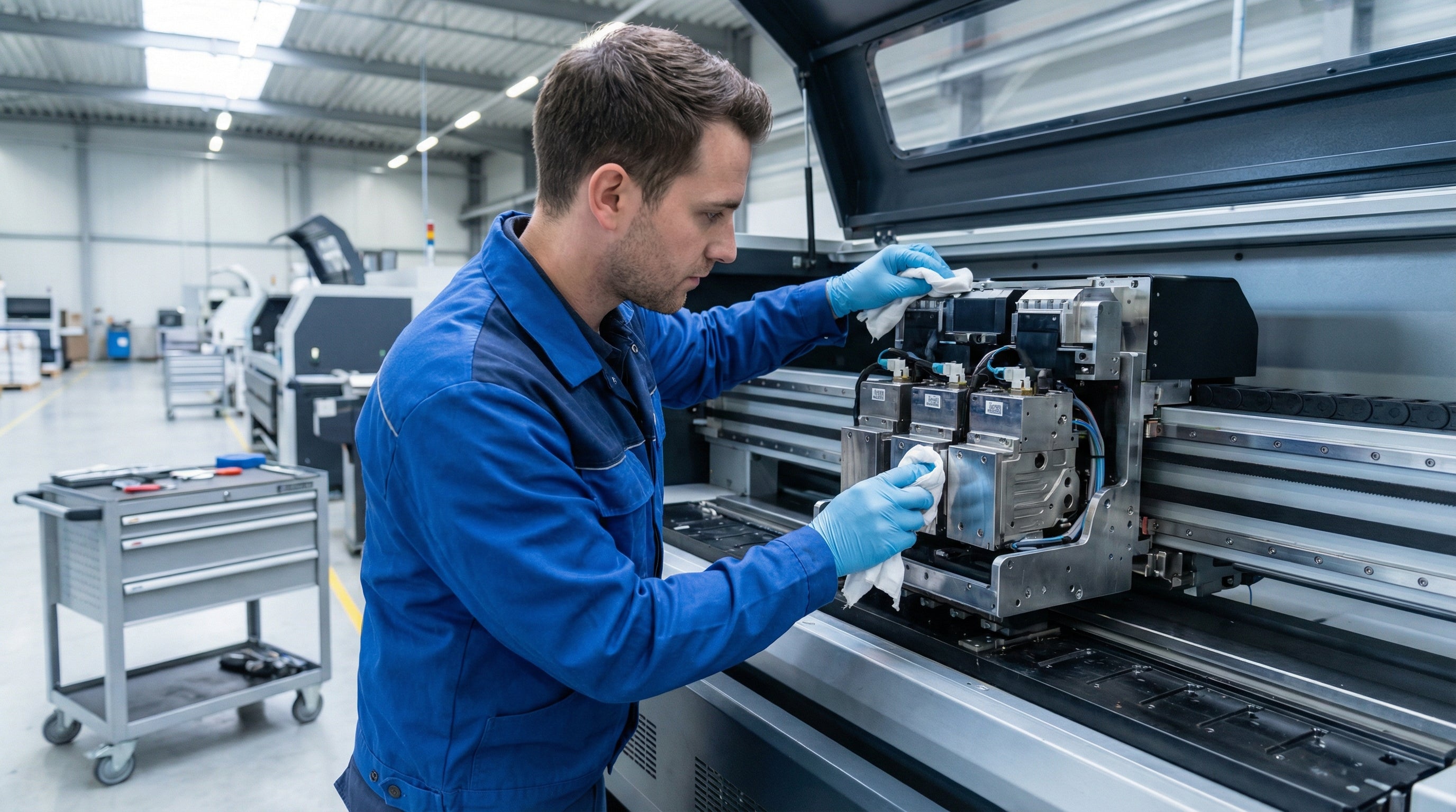 White rags are also preferred, as they contain no printed designs that could detach, interfere with printer heads, or cause surface scratching.